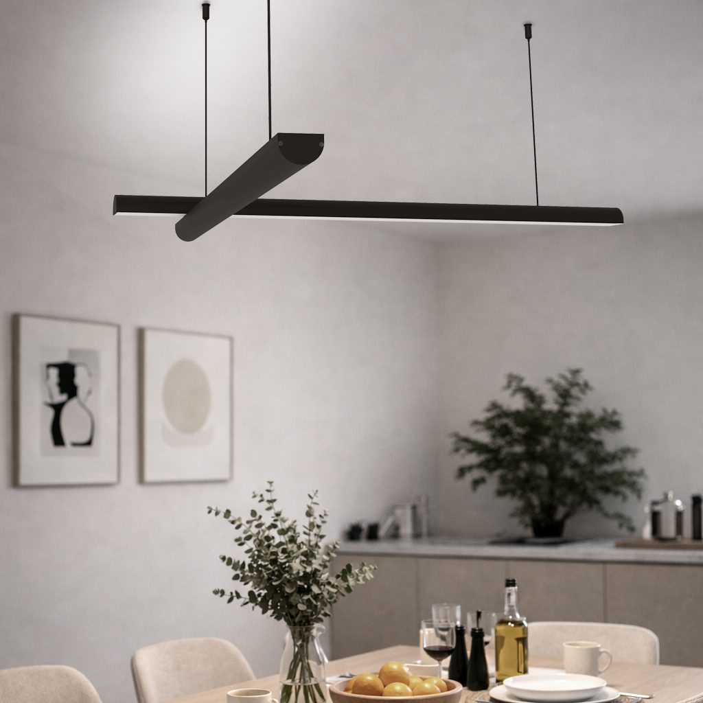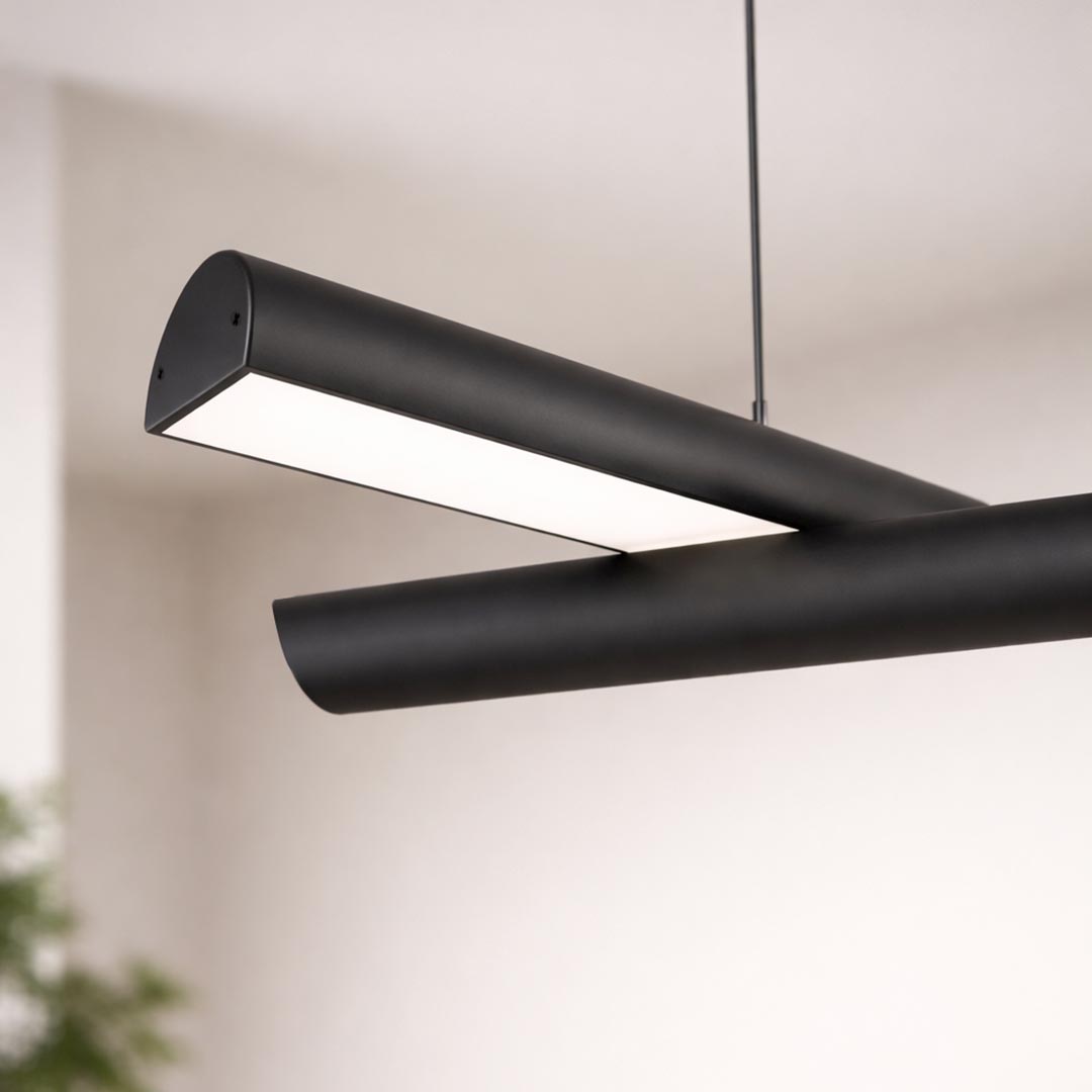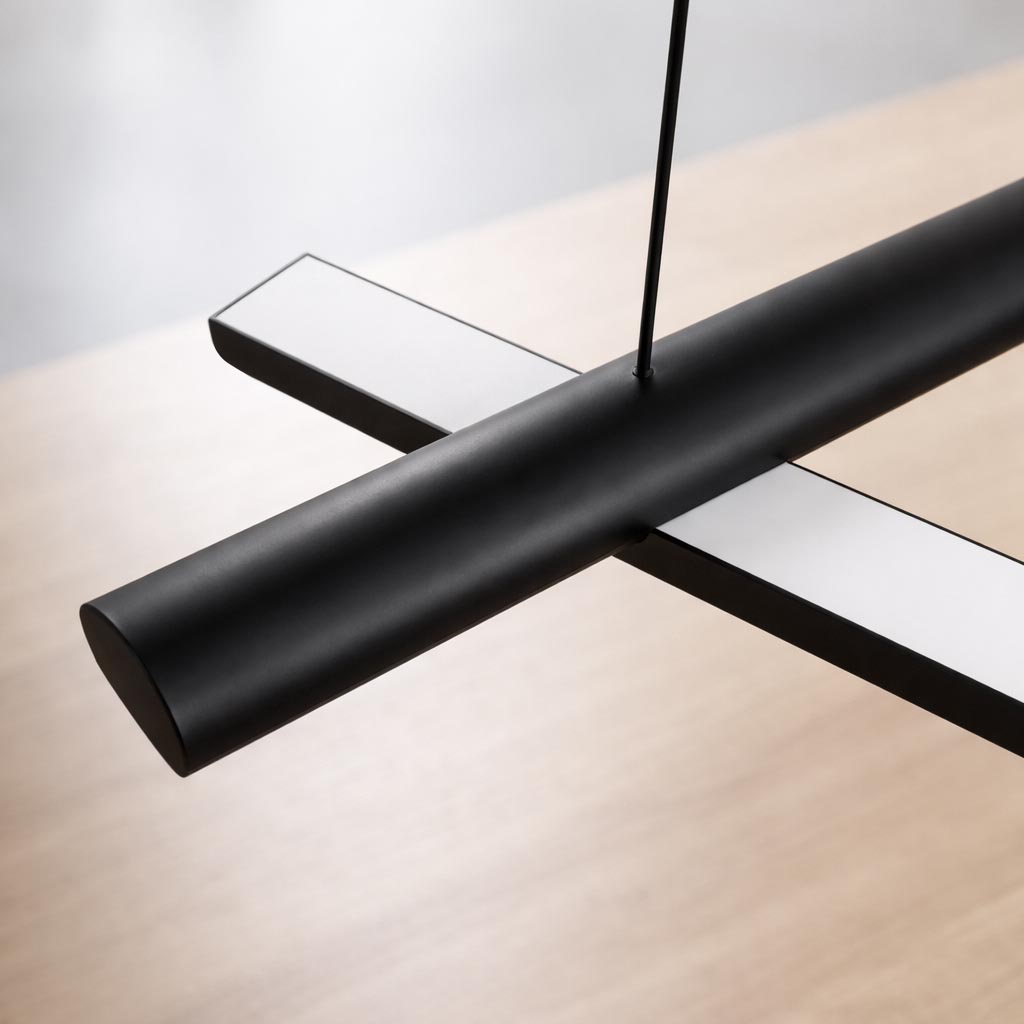 Pivot é movimento e forma em equilíbrio. Com duas hastes lineares móveis e junção rotacionável, permite composições únicas que transformam o espaço. Sua iluminação LED integrada, com emissão para cima ou para baixo, valoriza o desenho da peça e cria diferentes cenários luminosos. Um pendente versátil, contemporâneo e marcante, pensado para projetos que exigem personalidade e precisão.